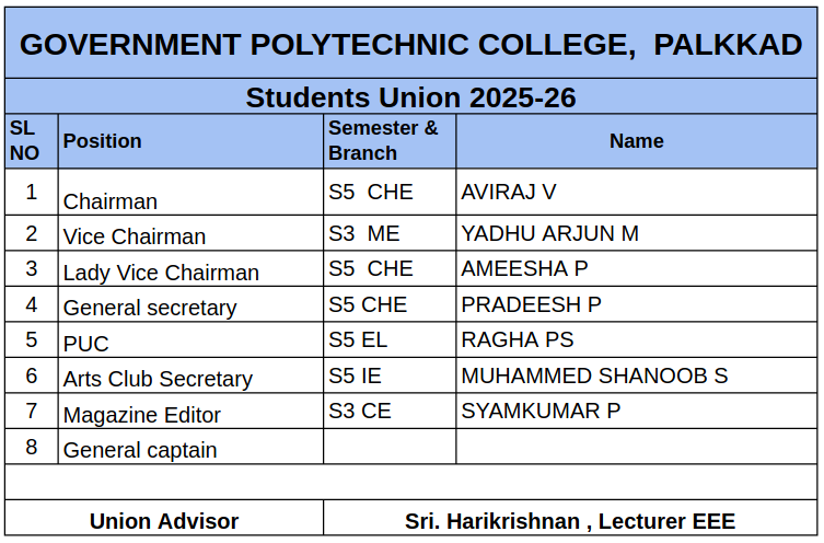 A Students’ Union is an important organization in a polytechnic institution that represents the interests and welfare of students. It acts as a bridge between the students and the college administration, helping to communicate students’ needs, problems, and suggestions effectively.